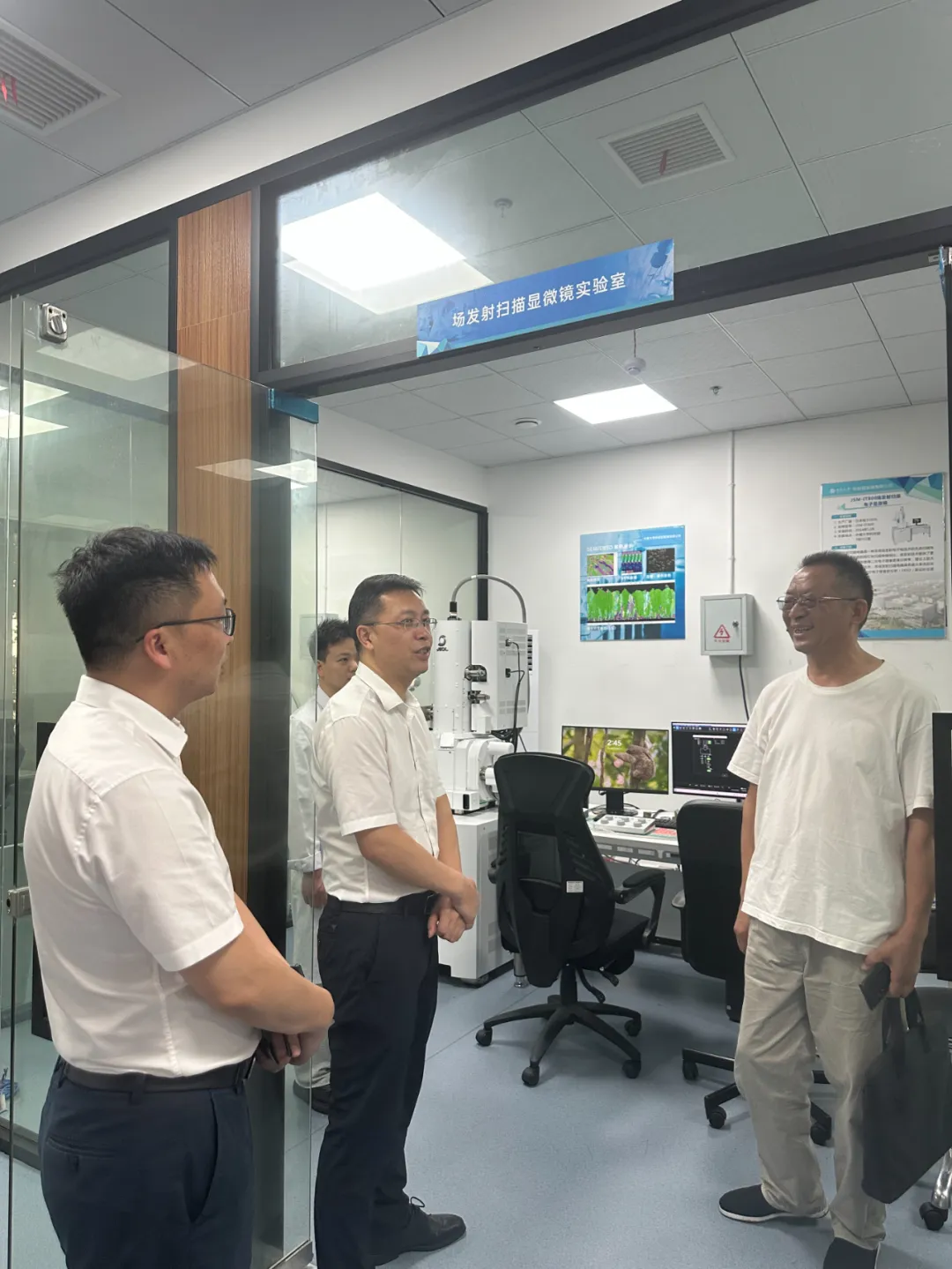 在观摩过程中,周斌副厅长结合湖南产业发展需求,现场接连抛出:“新材料领域的技术验证如何精准对接产业需求?” “如何通过开放服务吸引更多高校、企业参与?” “怎样让概念验证中心成为湖南13条重点产业链的‘创新引擎’?”等问题,与团队边走边问、边看边议,围绕转化痛点展开深度交流。