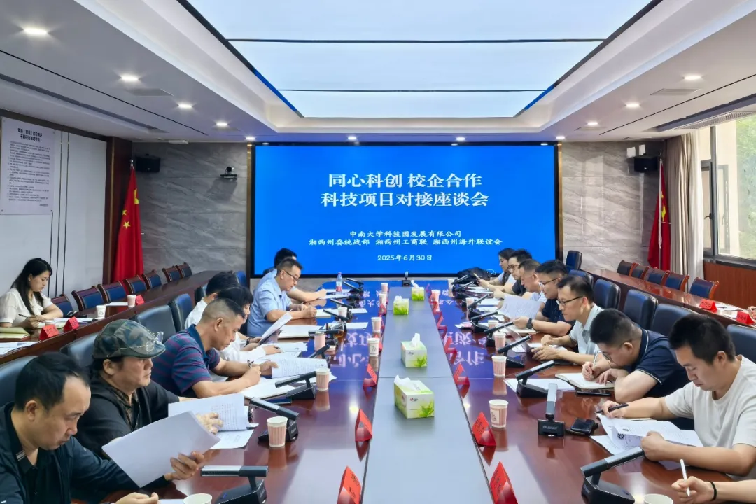 当日上午,中南大学国家大学科技园一行参加了湘西州“同心科创·校企合作”科技项目对接活动,伍晓赞、喻晓峰详细介绍了中南大学科技创新体系建设及科技成果转化实践情况。湘西州委统战部副部长、州工商联党组书记李延堃介绍了湘西州民营企业产业发展现状,十余家湘西州企业代表现场提出了具体技术需求。双方围绕联合技术攻关机制构建、产学研合作、成果转化服务体系优化等议题展开深度交流,并就深化校地企合作、共促湘西产业升级发展达成初步共识。